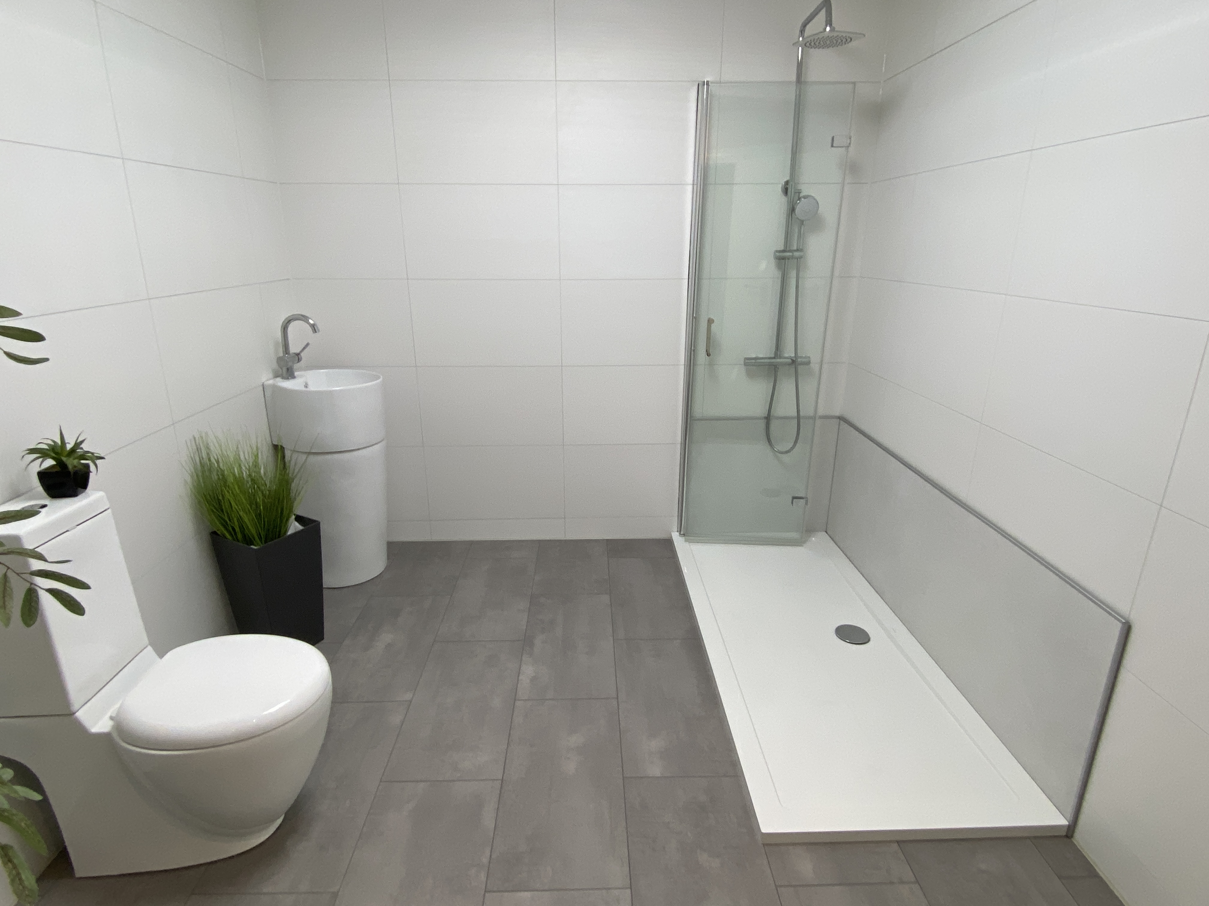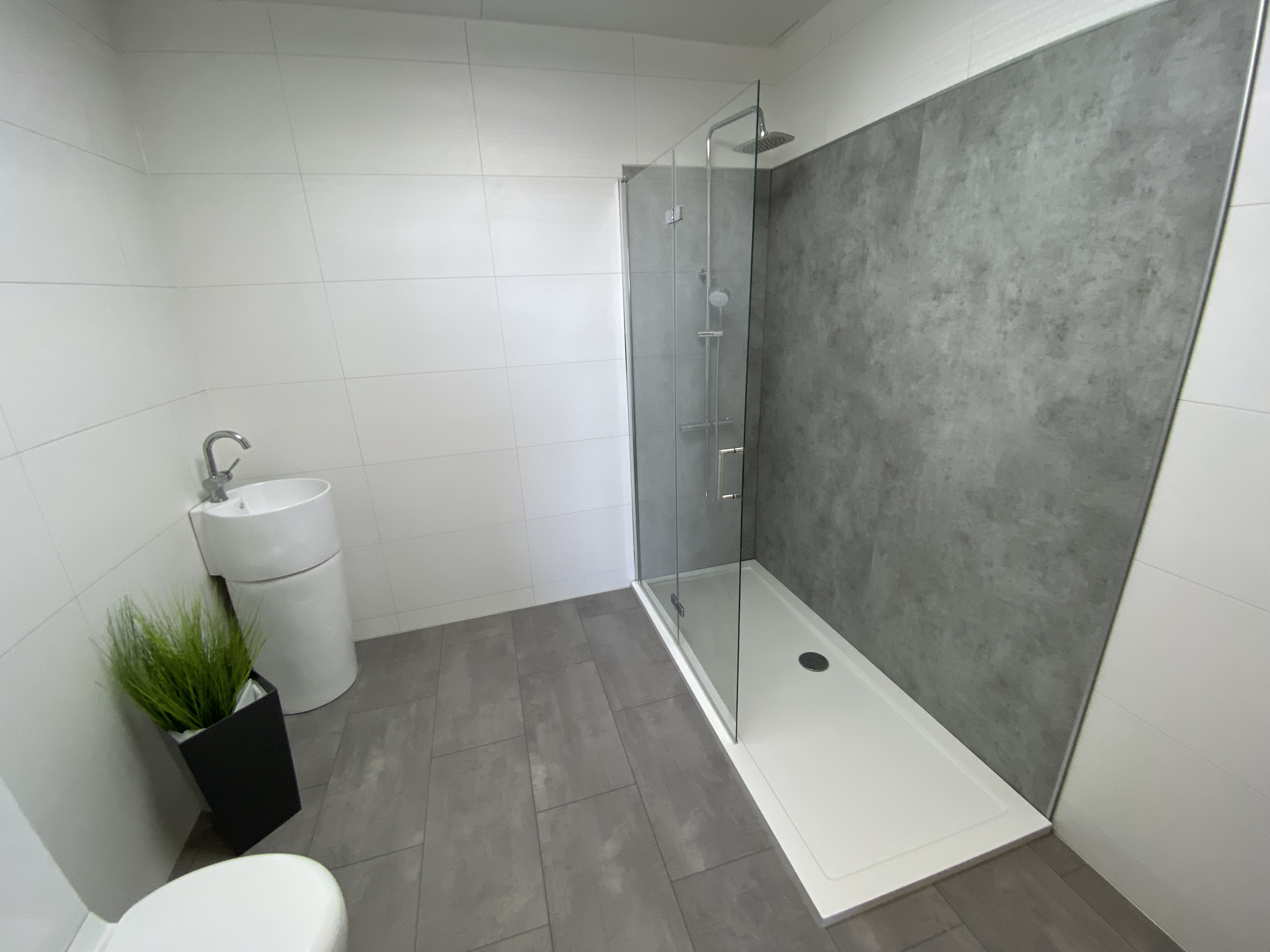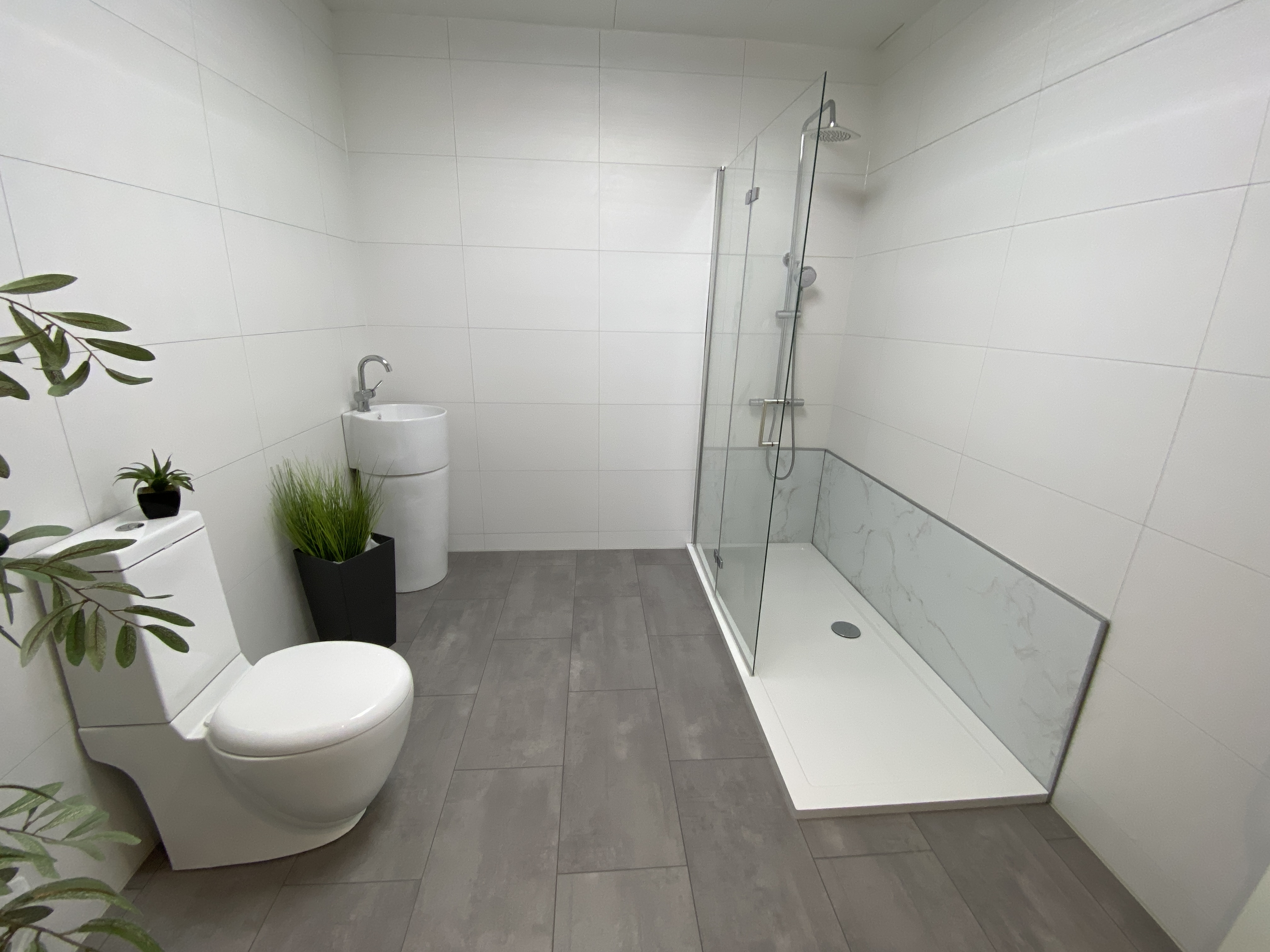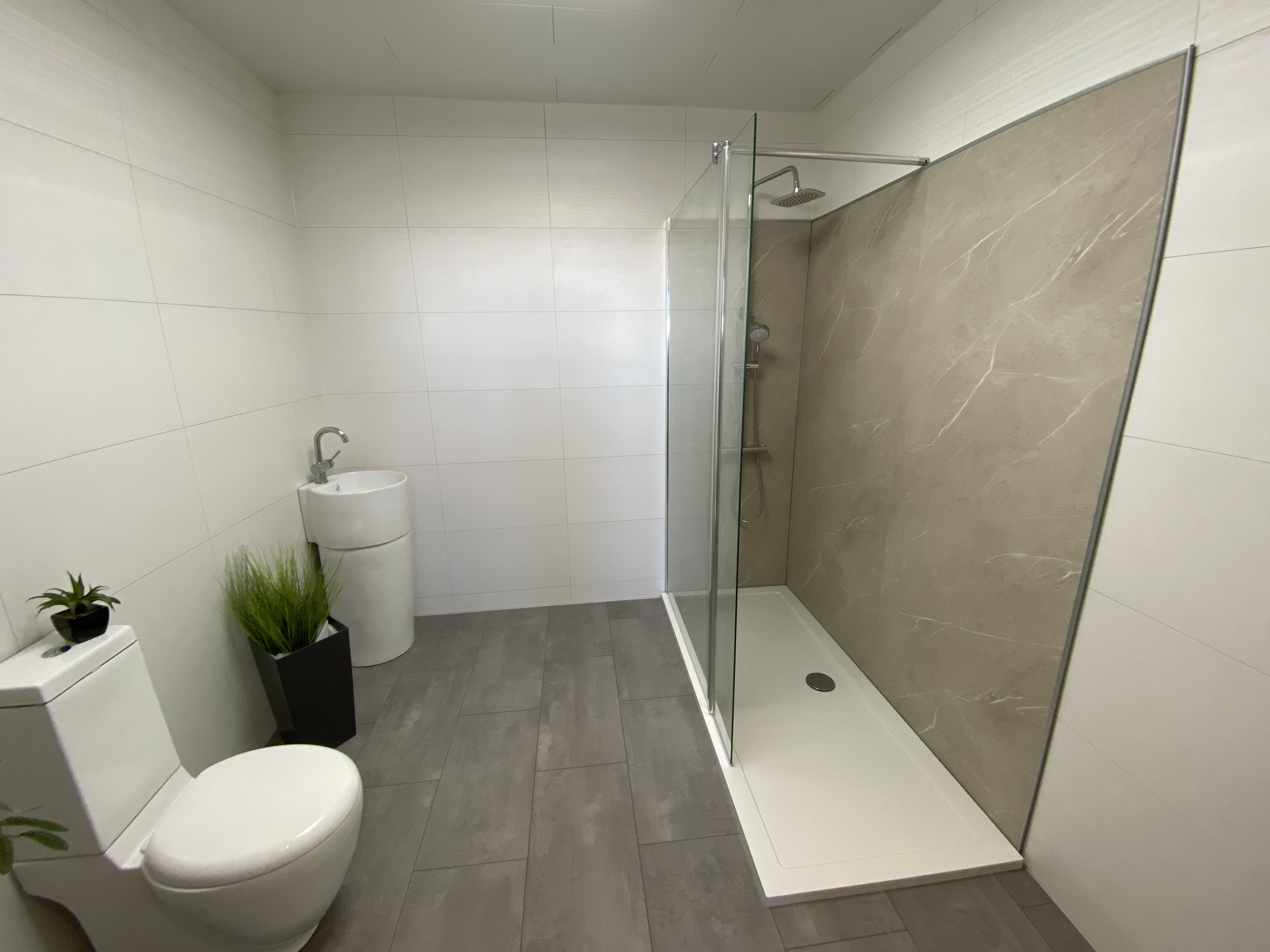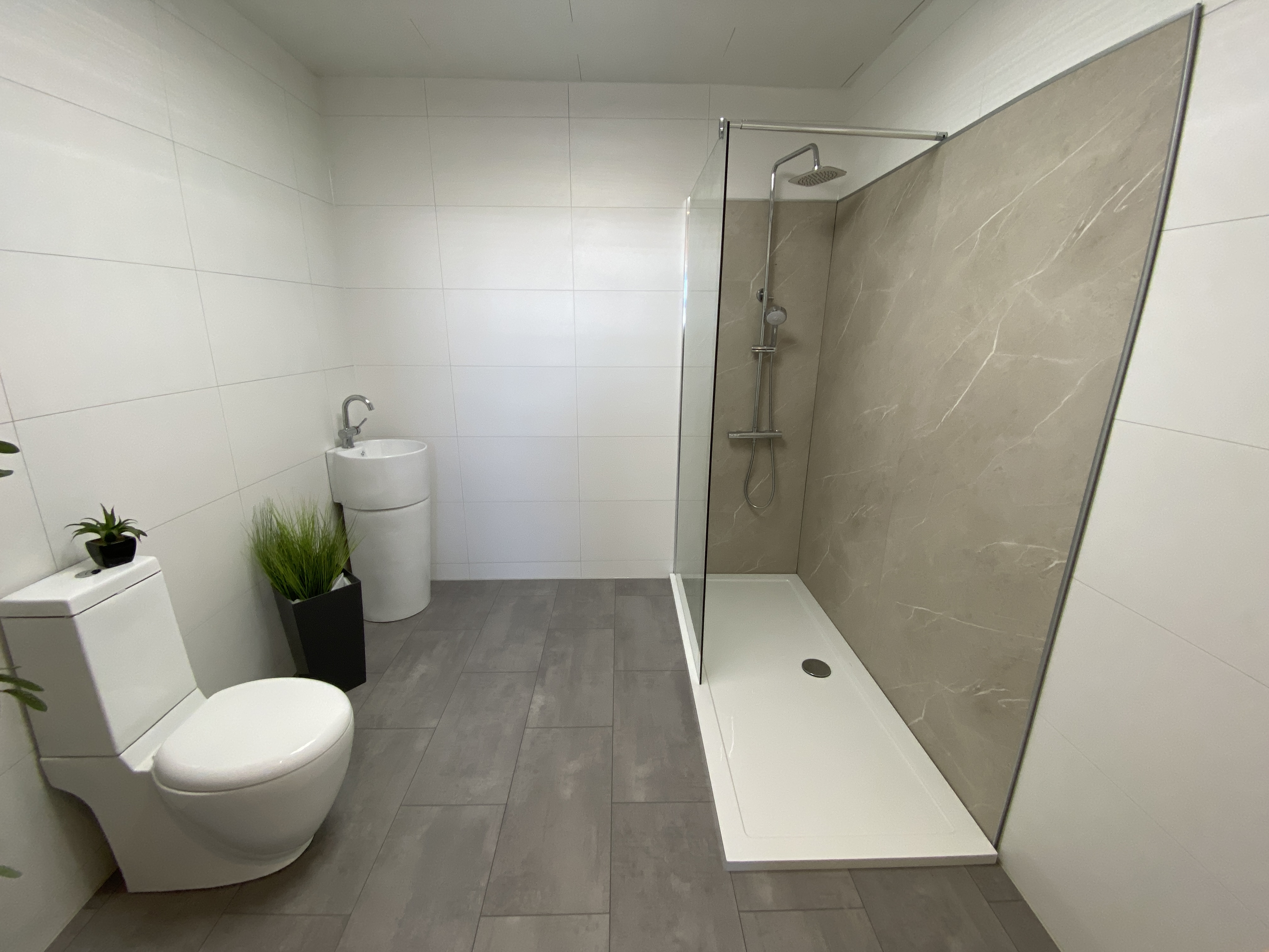 Individuelles Design: Wählen Sie zwischen klassischen Fliesen oder modernen SPC-Wandplatten – wahlweise nur im Wannenbereich oder für die kompletten Duschbereich.
